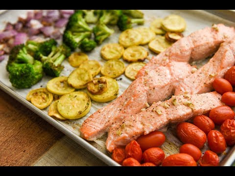 Easy, Healthy Sheet Pan Salmon Dinner Recipe - Sheet Pan Dinners Low Carb - Need a quick, delicious dinner recipe? Try this simple pan sheet salmon dish. Subscribe to Sharecare's YouTube channel: http://bit.ly/2o7SffY.