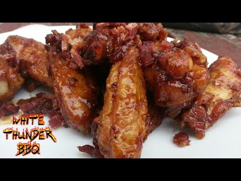 Maple Bacon Chicken Wings | Hickory Smoked Wings | White Thunder BBQ - Maple Bacon Bourbon Wings - These wings were fantastic. These give buffalo wings a run for their money. Sweet, spicy and covered in BACON! What more could you want. I hope you give ...