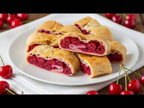Soft Cherry Strudel Recipe - Fresh Cherry Strudel Recipe - This homemade soft cherry strudel is absolutely delicious and very easy to make! domestic cherries are my fav! Web: https://www.feelyourmeal.com Facebook: ...