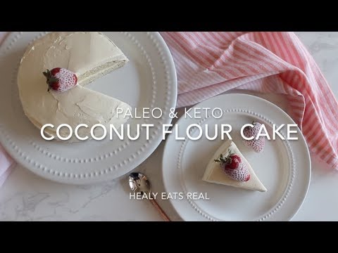 Paleo White Cake }}- Get the full recipe here: https://healyeatsreal.com/coconut-flour-classic-vanilla-cake-from-indulge-cookbook/ This classic vanilla coconut flour cake is light, fluffy ...